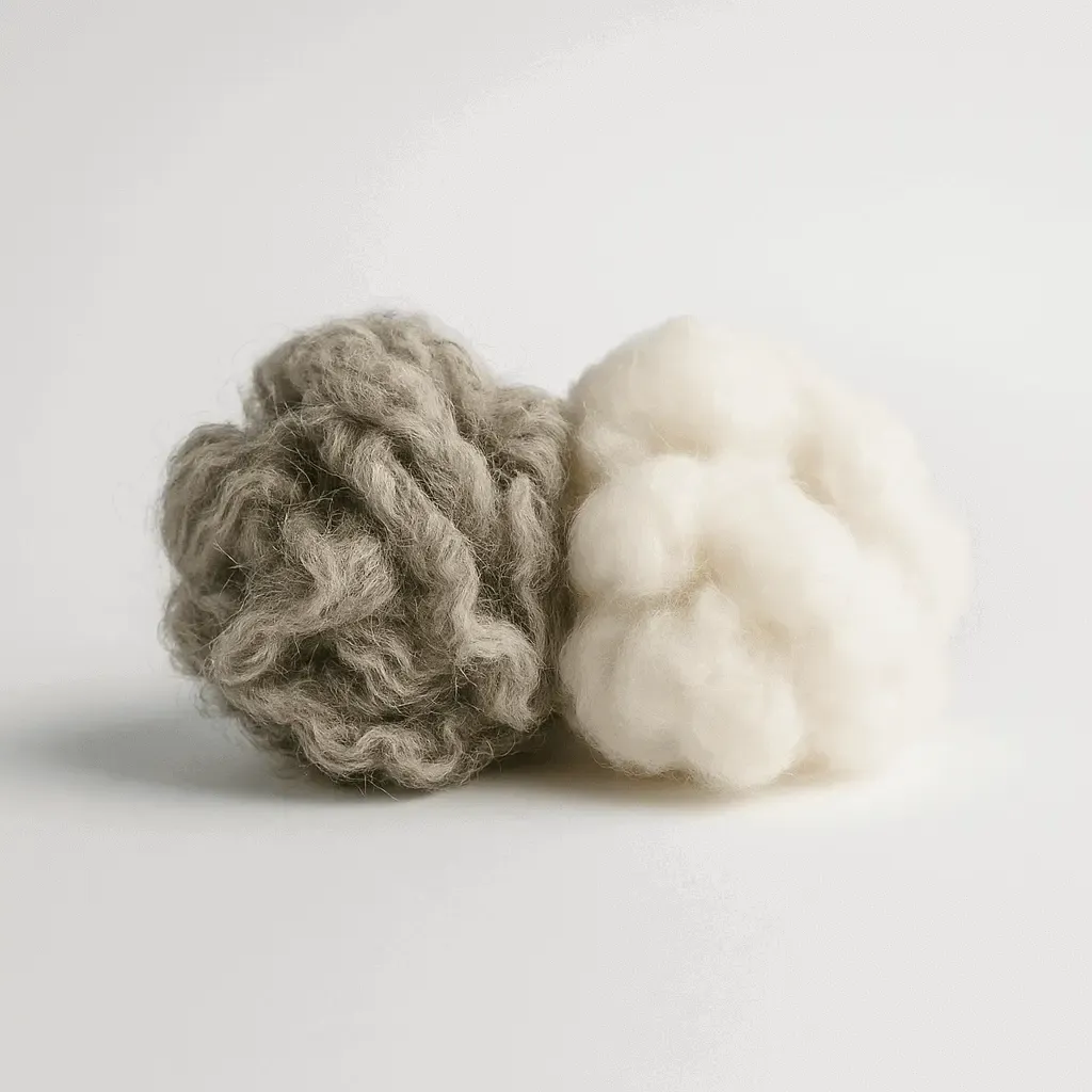 Uld og bomuld er naturlige tekstilfibre, der anvendes i indretning, hvor der stilles krav til komfort og kvalitet. Uld er slidstærkt og temperaturregulerende og bruges ofte til tæpper og møbelpolstring. Bomuld er let, åndbar og velegnet til gardiner og øvrige tekstile flader. Begge materialer tilfører blødhed og taktil variation i rum med hårde overflader og bidrager til en mere afbalanceret stemning.