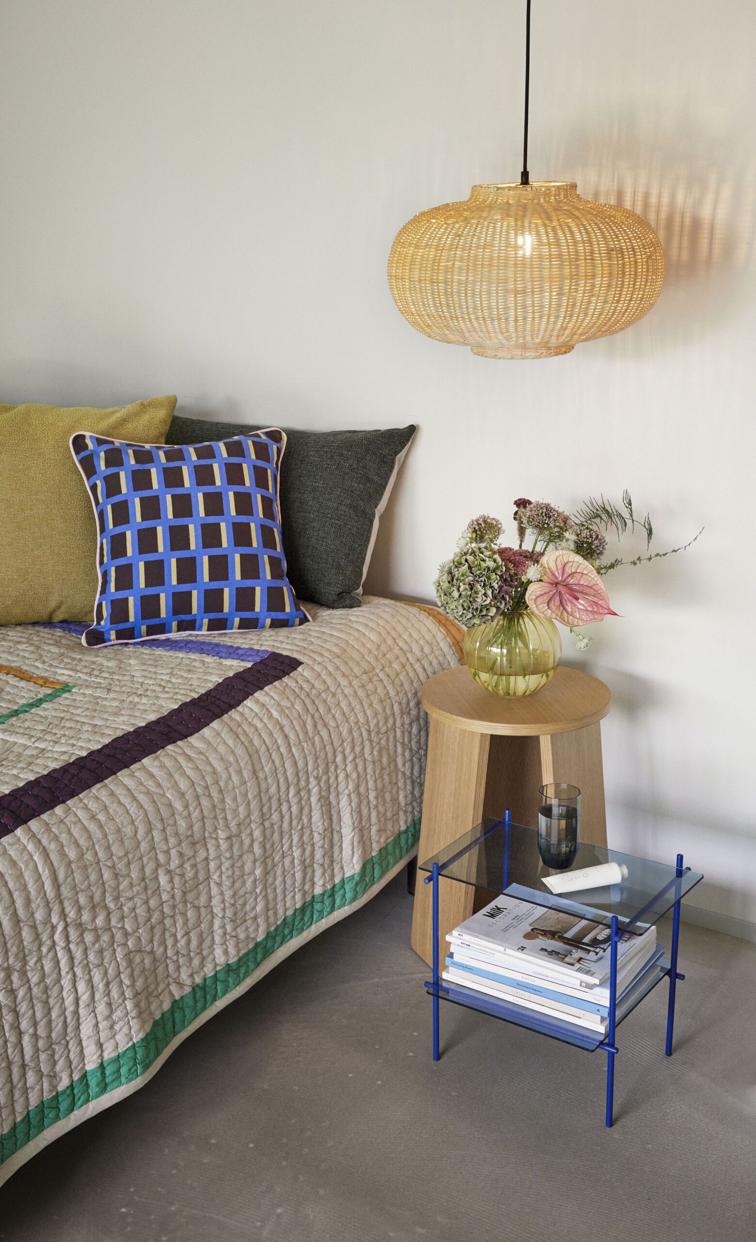 Smuk håndlavet lampe fra Hübsch. Lampen er flettet i rattan, som giver et varmt og hyggeligt lys til rummet.