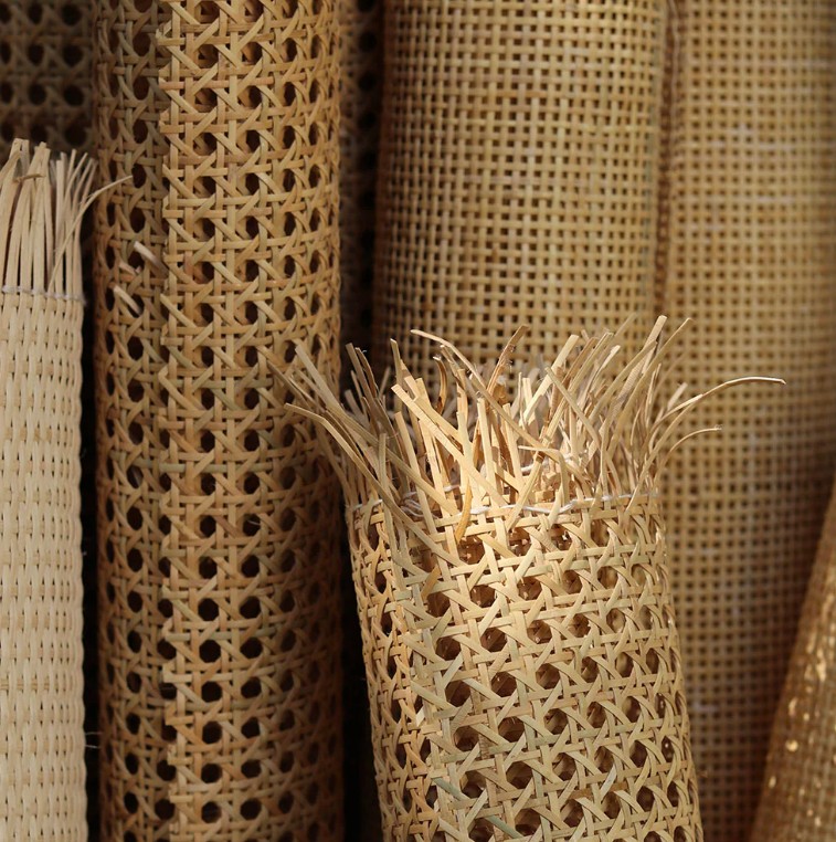 Fransk flet er et naturligt vævet rattanmateriale, der kombinerer styrke, fleksibilitet og et klassisk udtryk. Det er nemt at arbejde med og giver en let struktur, som både er funktionel og dekorativ.