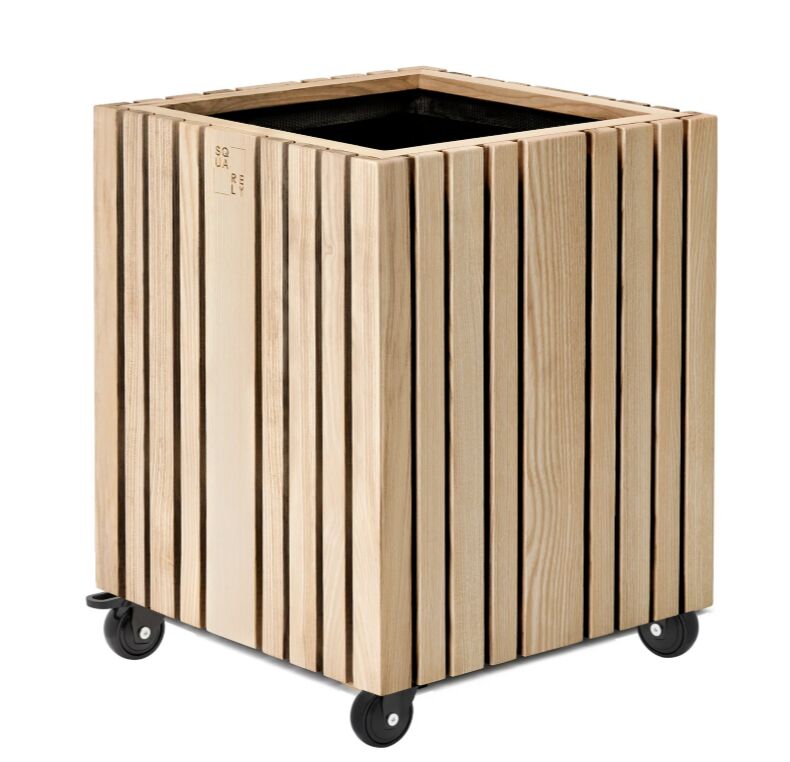 En kvadratisk plantekasse i aske træ eg med integreret selvvandingssystem og mulighed for hjul. Ideel til både inde- og udeområder, hvor den skaber grønne fokuspunkter og bidrager til et naturligt og roligt udtryk i professionelle omgivelser.