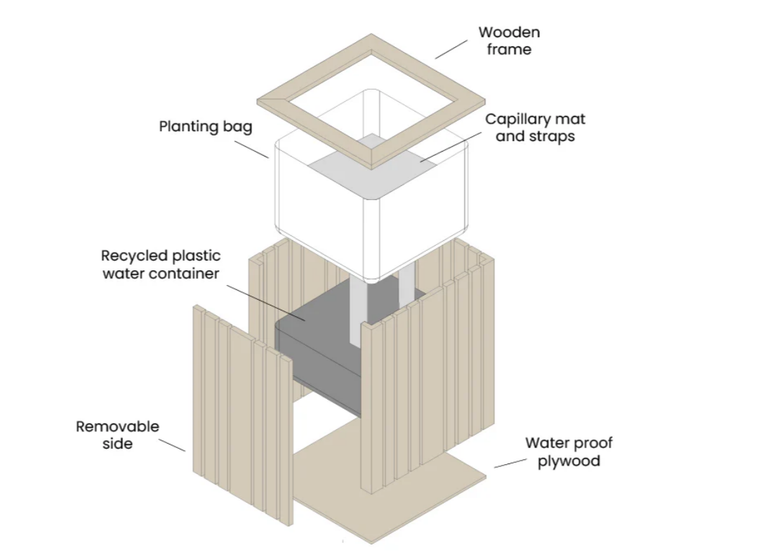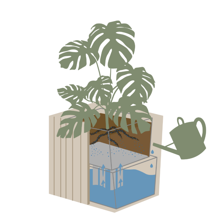 Plantekassen er udstyret med et integreret selvvandingssystem, der sikrer konstant fugtighed og optimal vækst. Vandreservoiret er skjult i bunden og har en kapacitet på 12 liter, hvilket reducerer behovet for manuel vanding og gør den ideel til arbejdspladser, hvor drift og vedligeholdelse skal være enkel. Systemet understøtter sunde planter og minimerer spild af vand og tid.