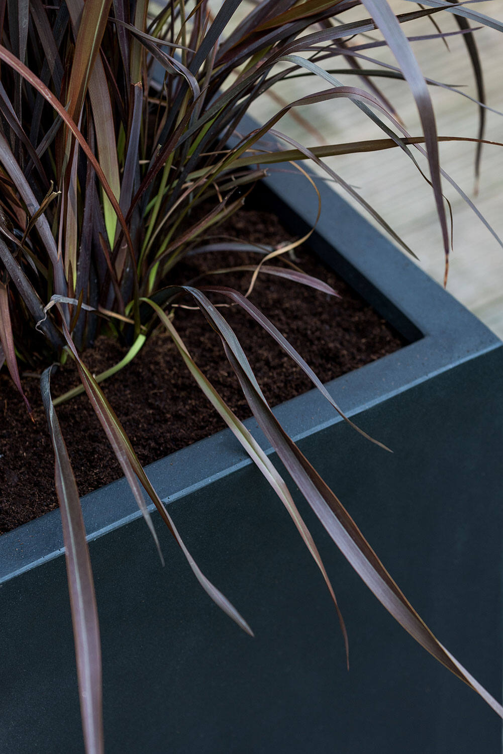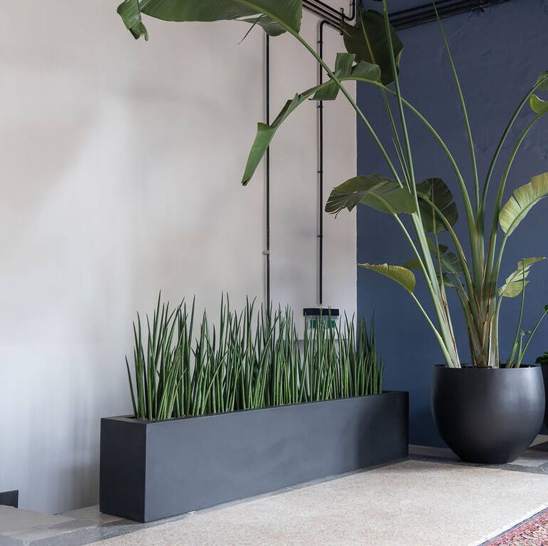 De rene linjer og den sorte overflade giver et tidløst, arkitektonisk look, som understøtter en moderne indretning – både indendørs i kontorer, receptioner og mødelokaler og udendørs på terrasser eller ved indgangspartier. Den rektangulære form gør dem velegnede til at skabe grønne zoner, afskærmning eller større planteinstallationer, der styrker både trivsel og visuel identitet i virksomheden.
