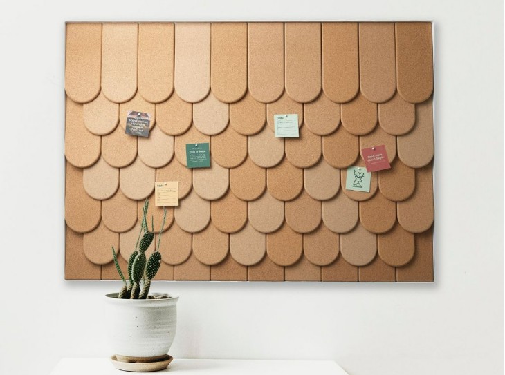 Panelet er opbygget af genanvendt korkgranulat og indrammet i en diskret slank aluminiumprofil, som fås i tre standardstørrelser. Opslagstavlen fås i fem organiske Saga-former, som tilføjer et roligt og naturinspireret præg til interiøret.